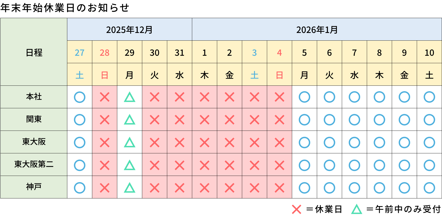 誠に勝手ながら、 2025年〜2026年にかけての年末年始は上記画像のスケジュールとさせていただきます。